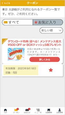 「愛車笑顔 トレイディング」をご利用いただくことで、お客様は数々の魅力的な特典を享受できます。アプリ限定で提供される特別な割引サービスは、各種メニューをよりお得にご利用いただける絶好の機会です。さらに、オイル交換などの重要な車両メンテナンスに適用可能な、アプリ専用のクーポンも随時更新し、お届けしております。これらの限定特典を活用し、高品質なサービスを手頃な価格で体験してください。