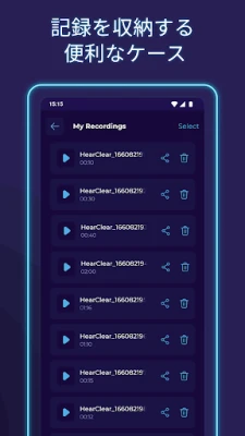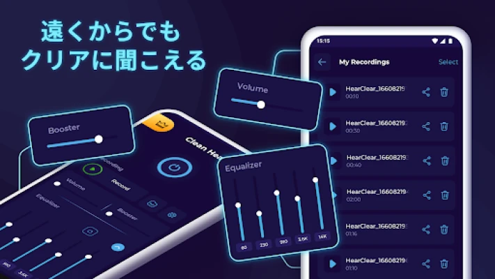 「Hearing Clear From Distanceリスニングデバイスアプリ」は、あなたのスマートフォンに秘められた音の増幅能力を最大限に引き出します。デバイスのマイクが捉えた音声を、高度な処理技術で増幅・補正。独自のイコライザー機能を使えば、聞きたい音はクリアに際立たせ、不要なノイズは抑制するといった、パーソナルな音質調整が可能です。これにより、賑やかな環境でも会話に集中したり、遠くのプレゼンテーションを明瞭に聞き取ったりと、様々なシーンでその真価を発揮します。録音機能や自動録音設定も備え、重要な音声を逃さず記録し、後から振り返ることも容易です。