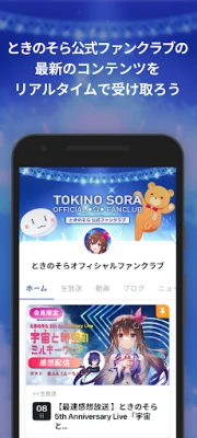 ときのそら公式ファンクラブの最新情報を手軽にチェック。生放送、限定動画、ニュース、ブログなど、ファン必見のコンテンツがこのアプリでいつでも楽しめます。
