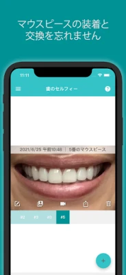 このアプリケーションの中心となるのは、緻密な装着時間管理機能です。開始・一時停止ボタンを備えた直感的なタイマーで、日々のマウスピース装着時間を正確に記録し、目標達成を強力にサポート。もし装着時間が不足している場合には、適切なタイミングでリマインダーをお届けします。さらに、新しいマウスピースへの交換時期を確実に通知。その度に「歯のセルフィー」を撮影することで、あなたの笑顔が着実に変化していく様子を視覚的に記録し、治療の進捗と喜びを実感できます。